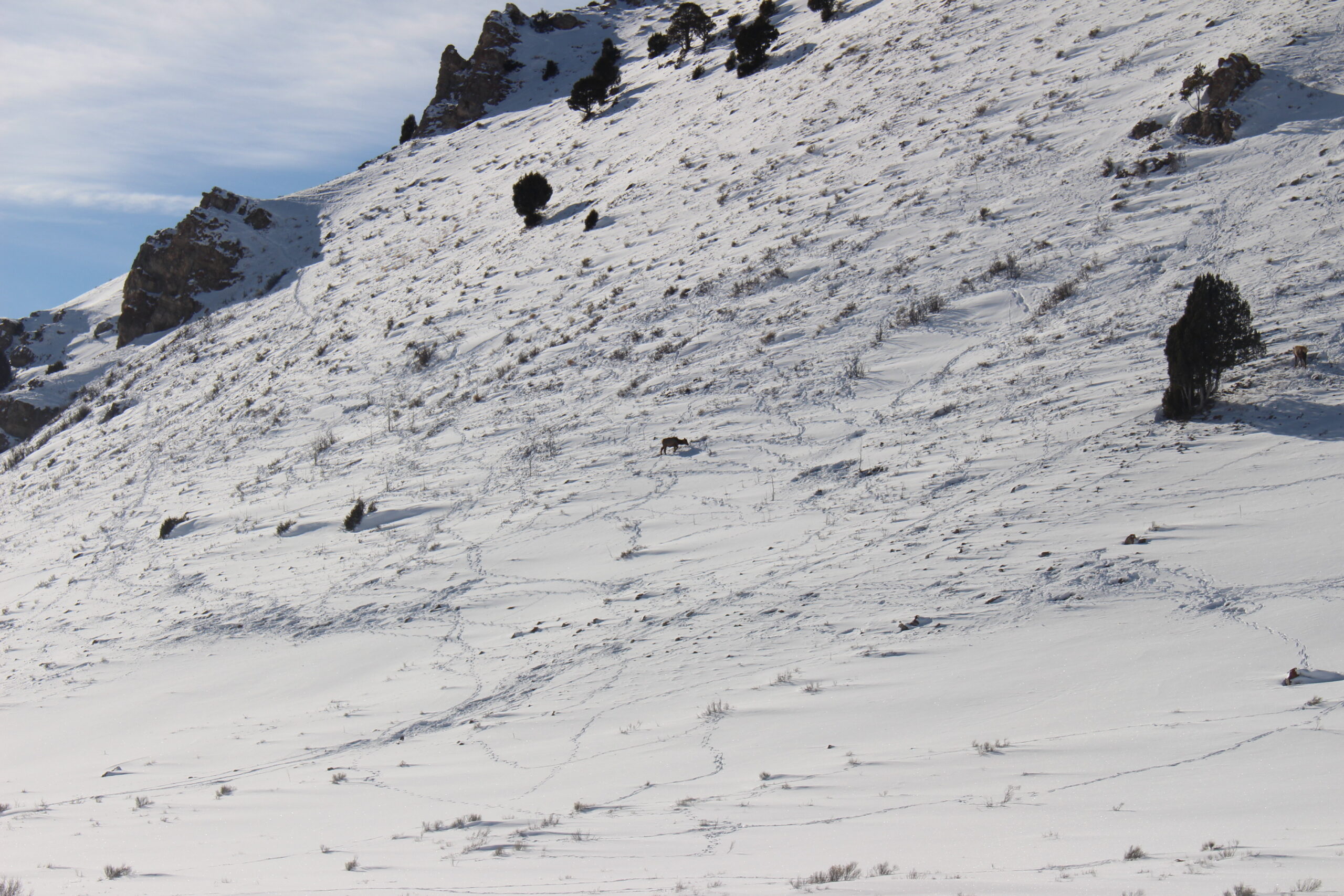 These same elements also make it difficult for large mammals to survive our long, harsh winters. Overwintering animals like bighorn sheep, moose, elk, and mule deer are slowly starving – losing weight and depending heavily on their fat reserves from the summer. When we disturb wildlife in the winter, we increase their stress levels and force them to expend precious energy to relocate. This can lead to poor health and, if repeated, can lead to mortality.