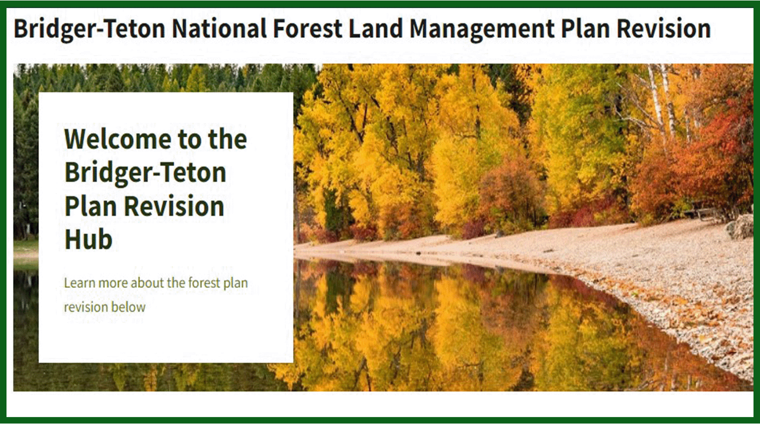 The Bridger Teton National Forest recently commenced the Forest Plan Revision process. The last Forest Plan was published in 1990, and a lot has changed since then. Don’t let this once in a generation opportunity go by without providing your input – it will influence forest management for the next 30 years.